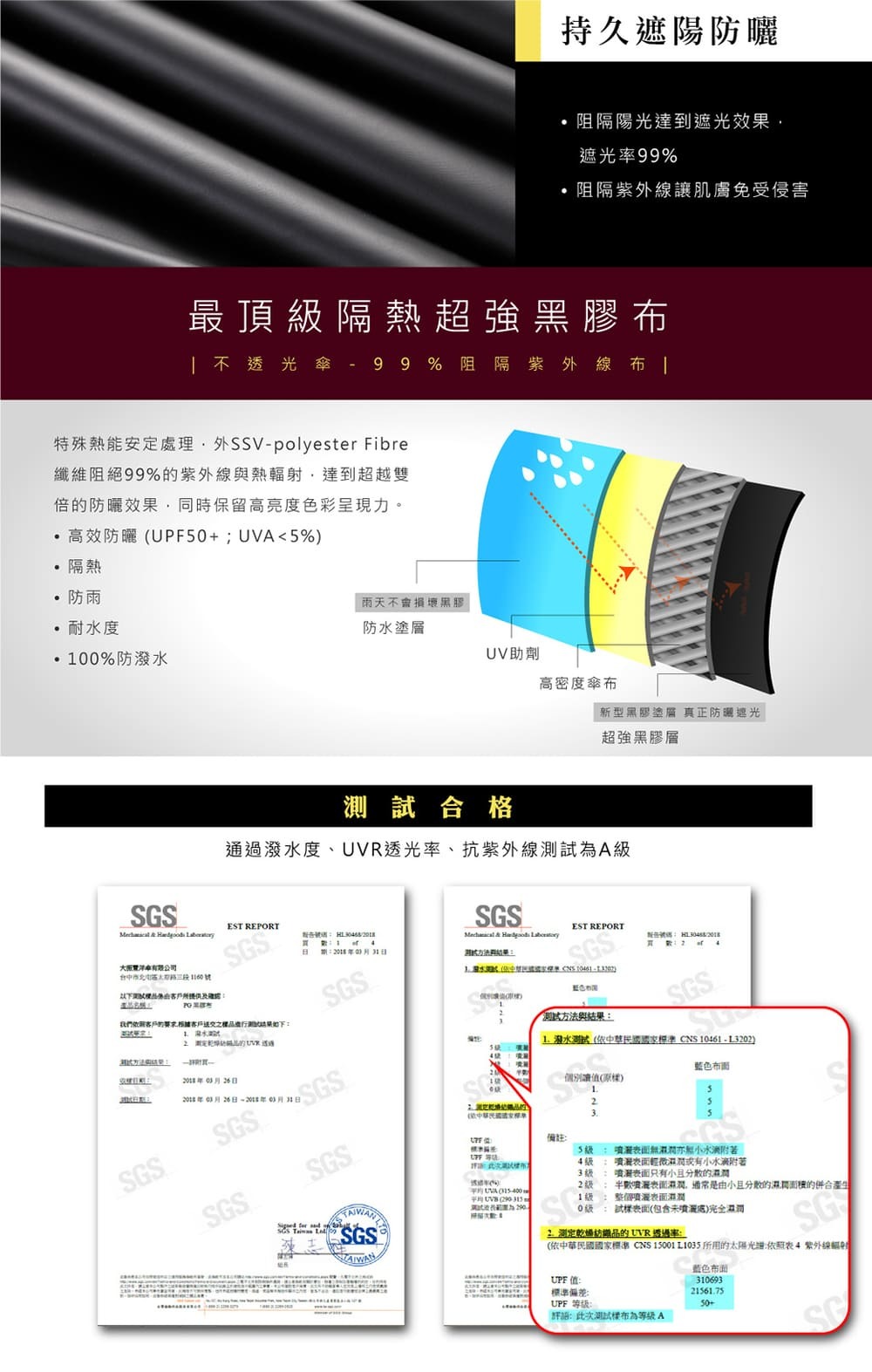 ✅內層黑膠傘布防曬率高達99%