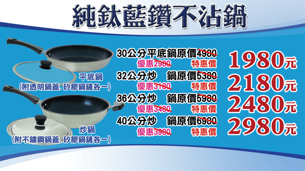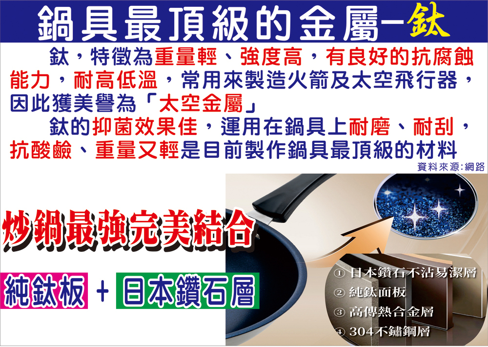 3.純鈦藍鑽不沾平底鍋第一次使用前,請先以八分滿的清水煮沸後再進行清洗擦乾