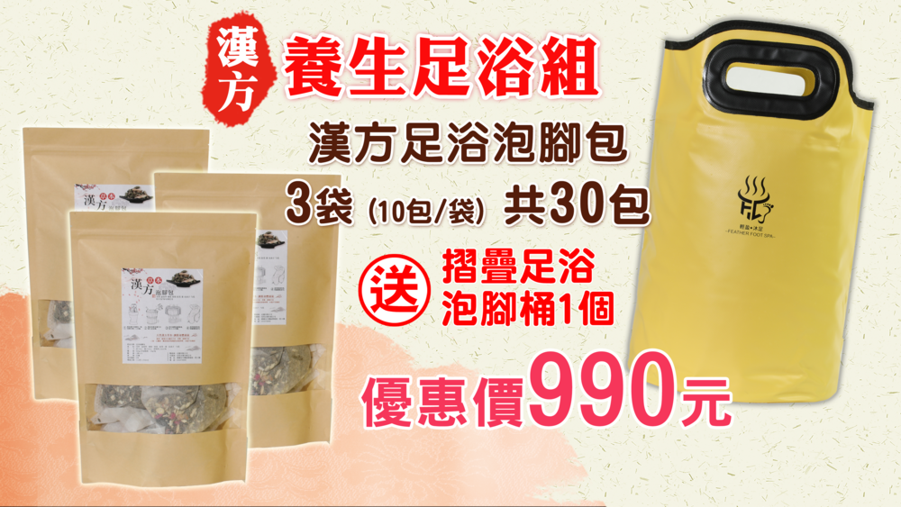 1.草本漢方泡腳包1袋,用開水煮5-10分鐘