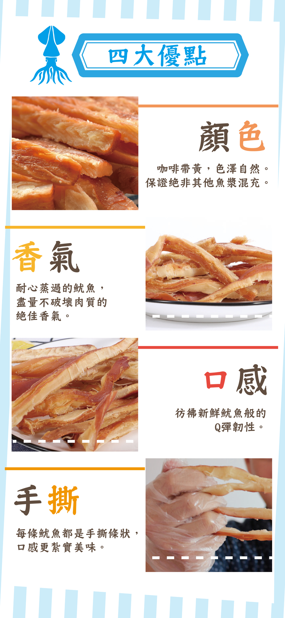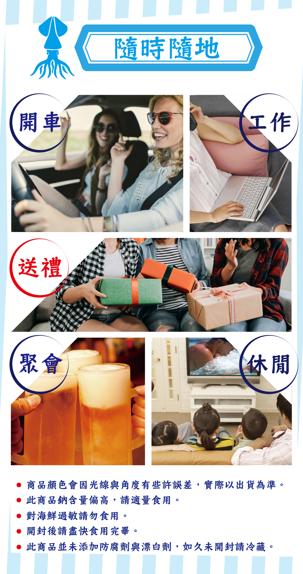 有別於傳統魷魚絲難以咀嚼,老人和小孩也都可以輕鬆吃,而且越嚼越香!絕對你是追劇、看電影必備「良」食!
