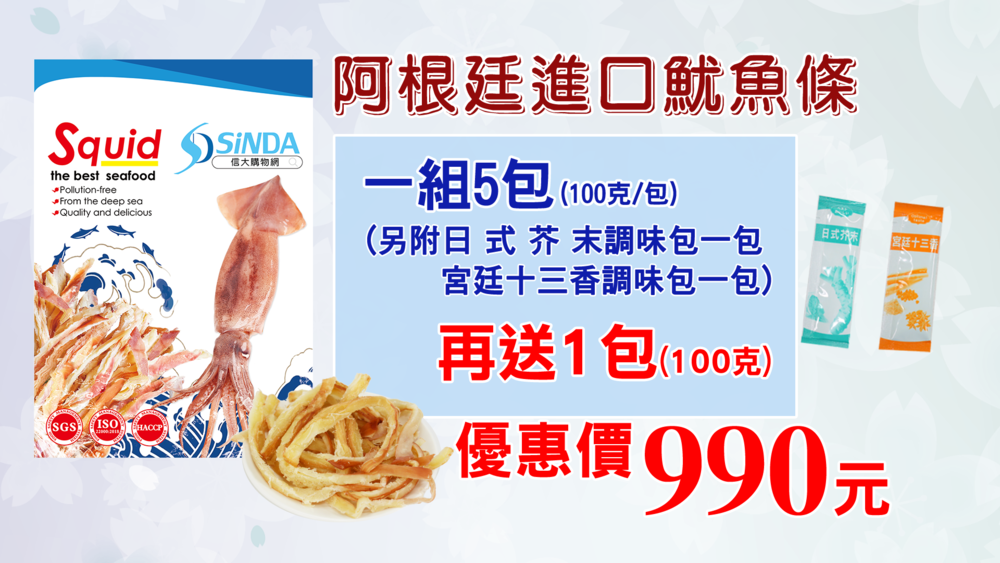 信大嚴選推薦阿根廷深海魷魚條,來自南美的阿根廷深海海域新鮮捕撈,口感非常鮮嫩,讓人吃了一口就無法忘懷!