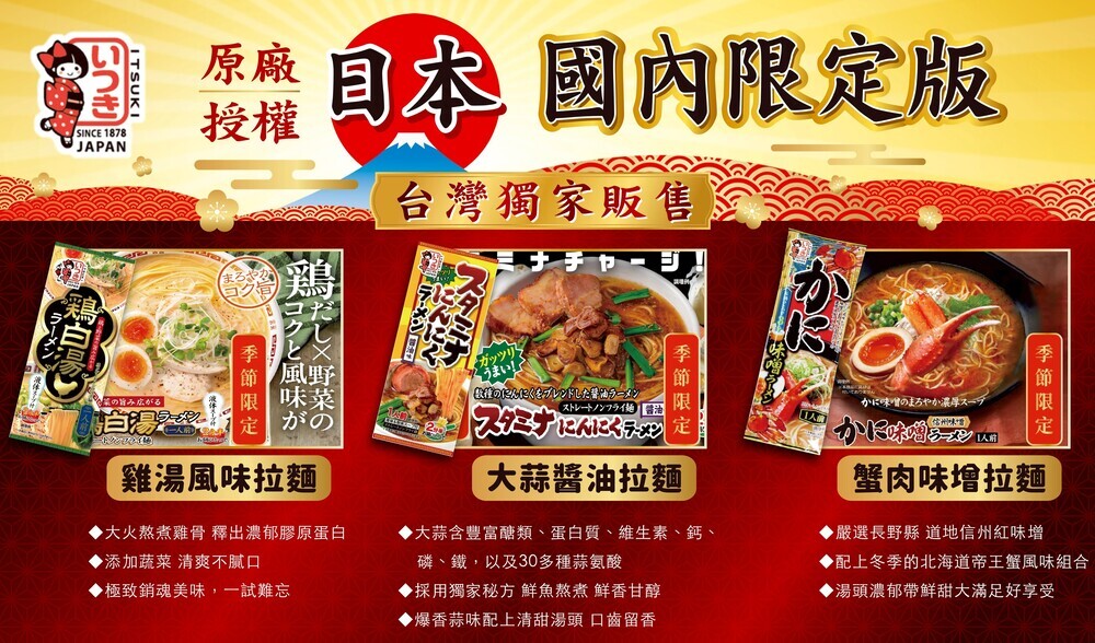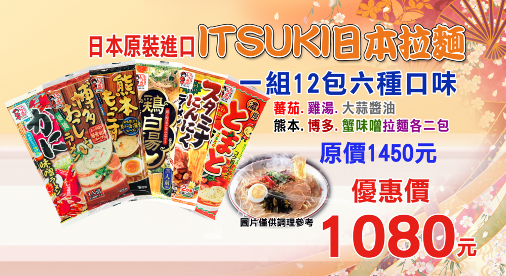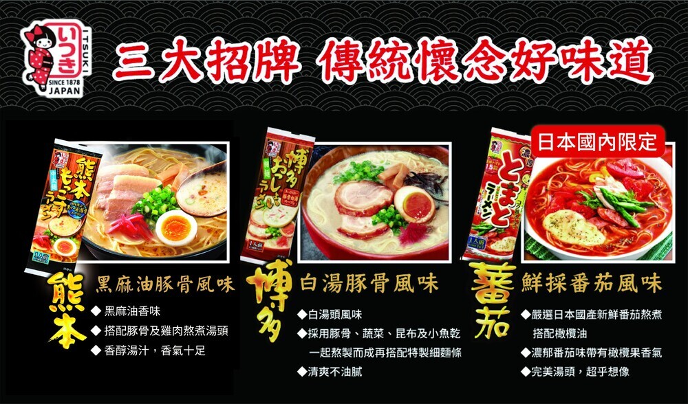 組合: 博多*2包+豚骨*2包+番茄*2包+蟹味增*2包+雞湯*2包+醬油大蒜*2包
