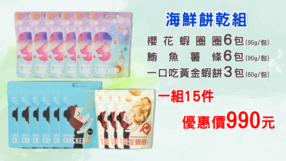 組合:魚薯條*6包+蝦圈圈*6包+黃金蝦餅*3包