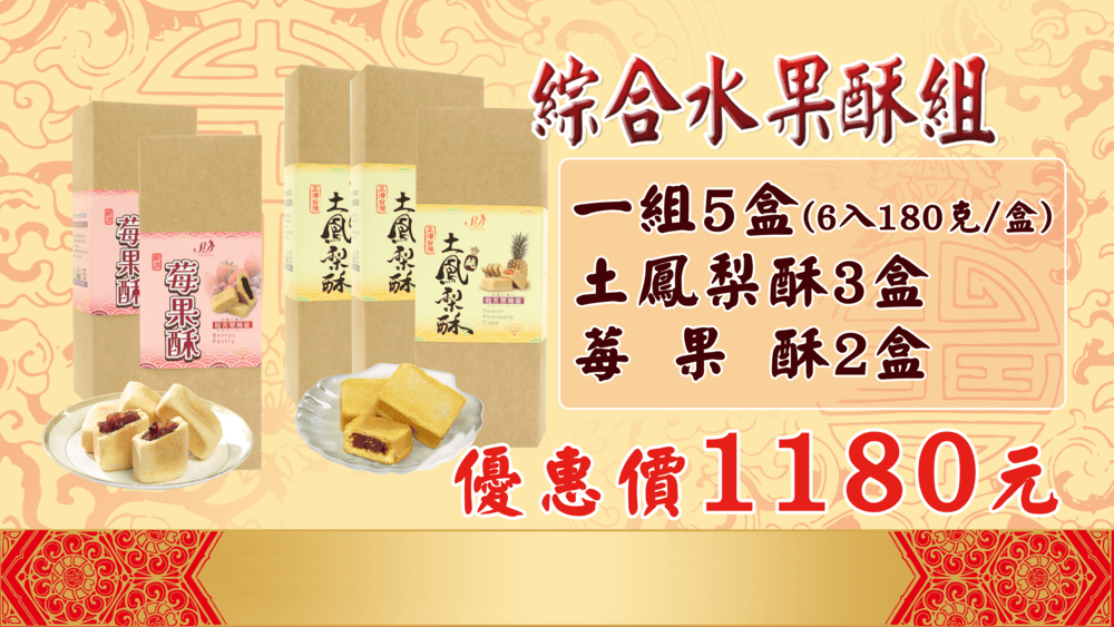 組合:(鳳梨酥5塊+莓果酥5塊) x 3盒 (附提袋)