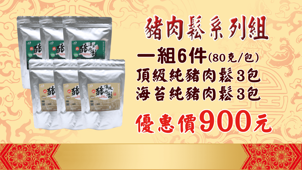 組合:頂級純豬肉鬆3包、海苔純豬肉鬆3包