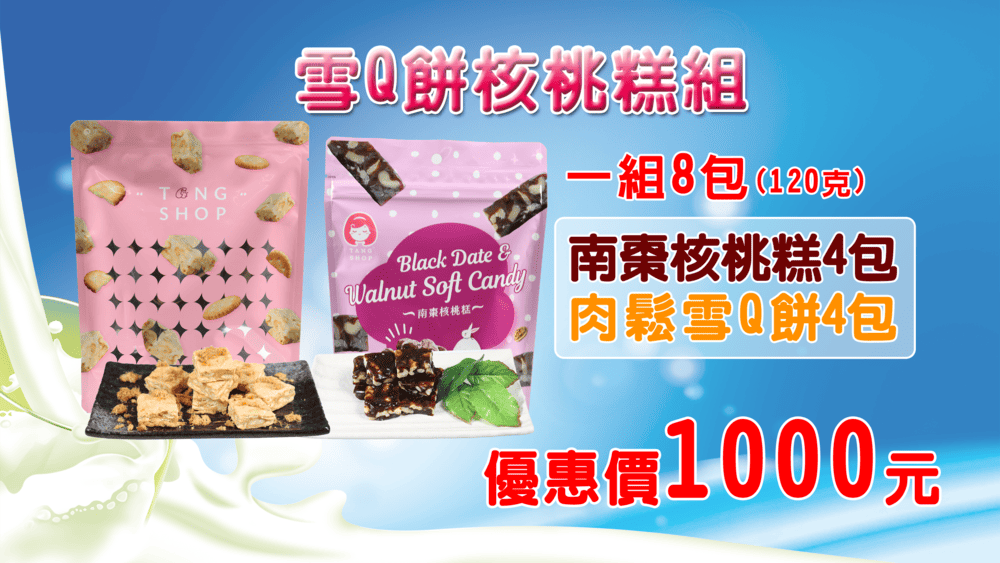 組合:肉鬆雪Q餅*4包+南棗核桃糕*4包