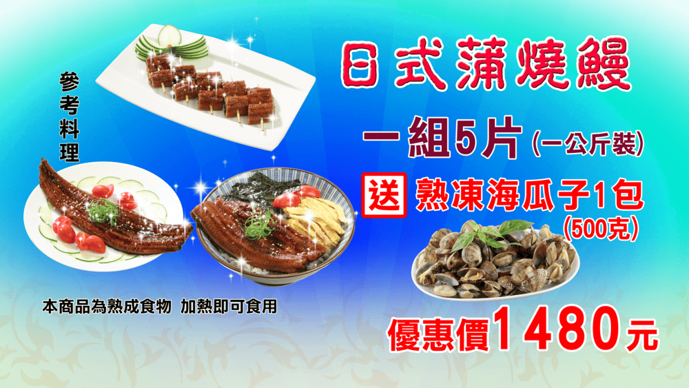 1:使用微波爐時:先解凍後,剪除袋口取出調理鰻,置於微波爐中以強微波加熱約二分鐘,即可食用