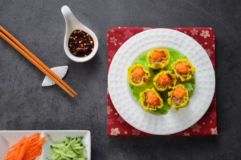 稍麥之名『以麵作皮,以肉為餡,當頂作為花蕊,方言謂之稍麥。』又因與熟的麥穗相似,遂改名為『燒賣』以麵粉製成的薄皮包著肉蒸熟,伴湯而食,是港式點心中必吃的一道菜。