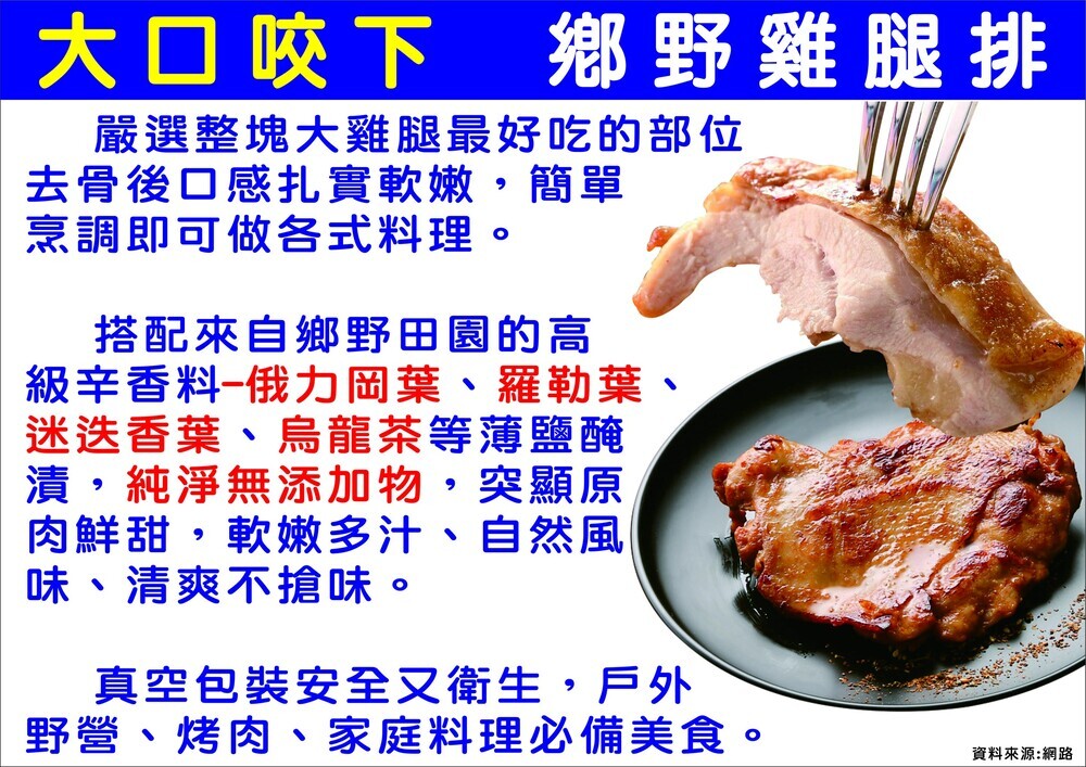 成分:雞肉.水.二砂.食鹽.蒜粉.俄力岡葉.羅勒葉.迷迭香葉.蒜粒.巴西里.辣椒片.烏龍茶.麵粉.樹薯澱粉.小麥澱粉