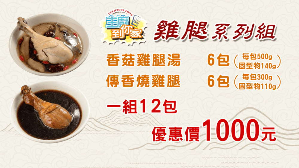 組合:傳香燒雞腿6包+香菇雞腿湯6包