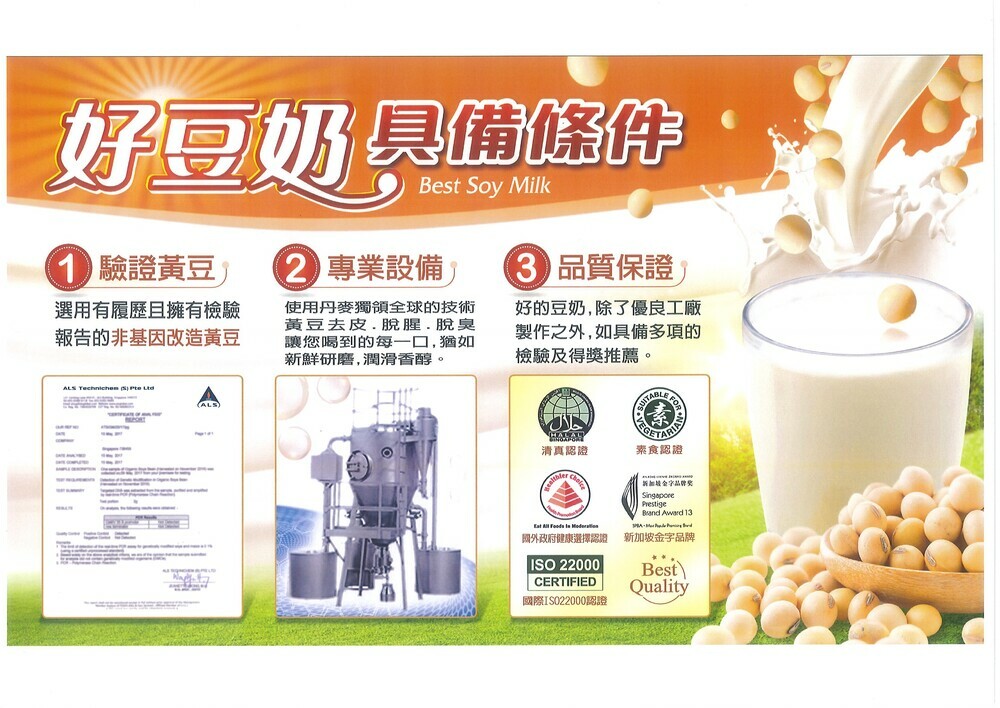 堅持選用德國BCS認證的非基因改造黃豆,配合專業的去皮技術,讓豆奶口感更為細膩香濃。