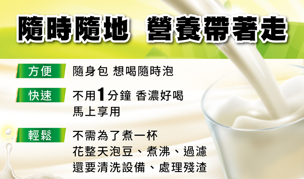 除了擁有清新的豆香,更是無腥味、低普林、無香精、無防腐劑、無人工色素,可說是健康無負擔!