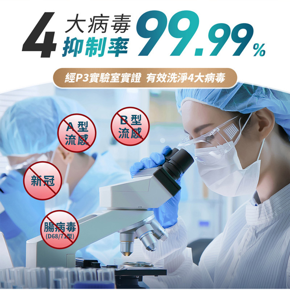 ✅有效洗淨新冠病毒、A/B型流感、腸病毒4大病毒