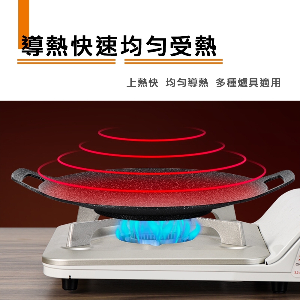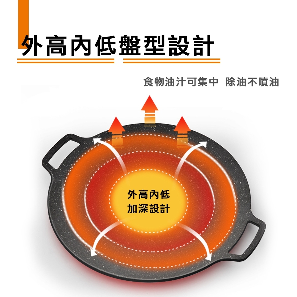 5.一體成型,鍋體外高內低設計,不跑油、不濺油、中心煎炒,周邊烤肉兩不誤