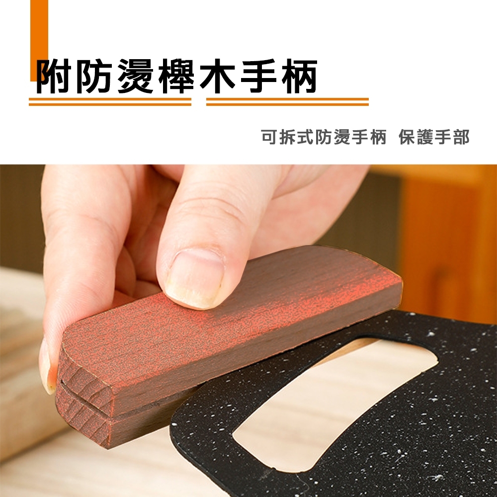 6.可拆式櫸木手把,圓潤導角手感好,兼具防燙、美觀作用