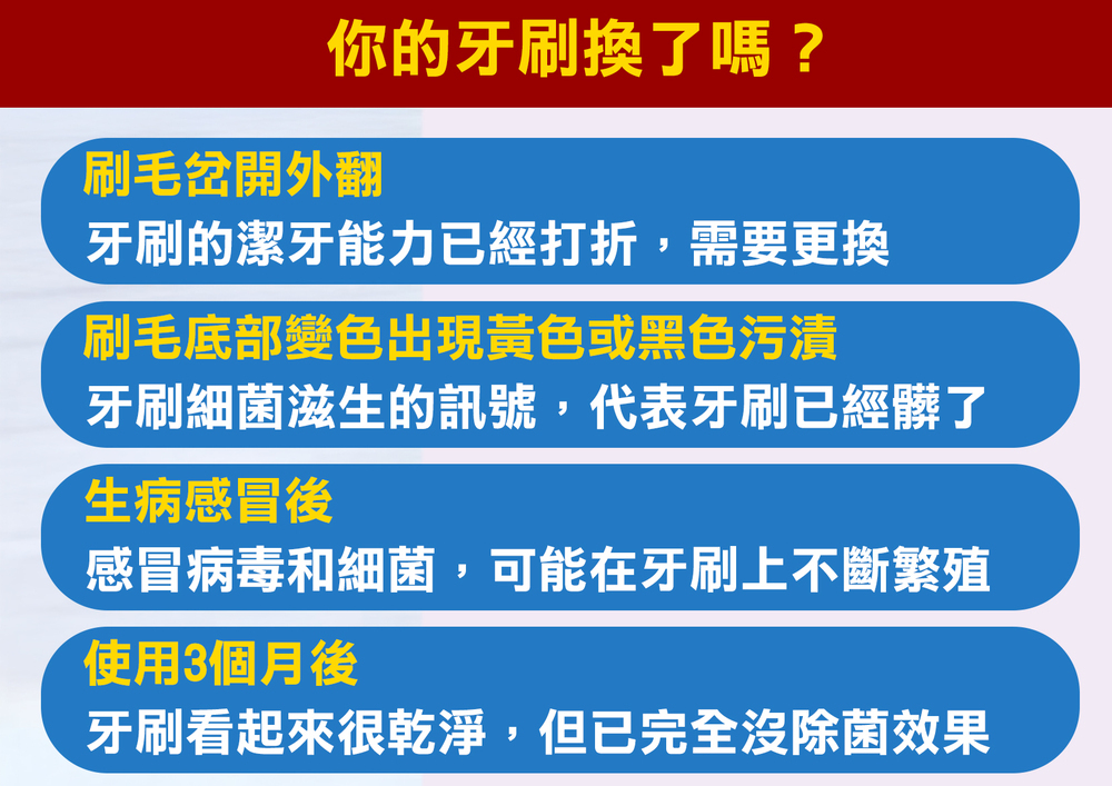 注意事項:牙科醫師建議每3個月更换新牙刷