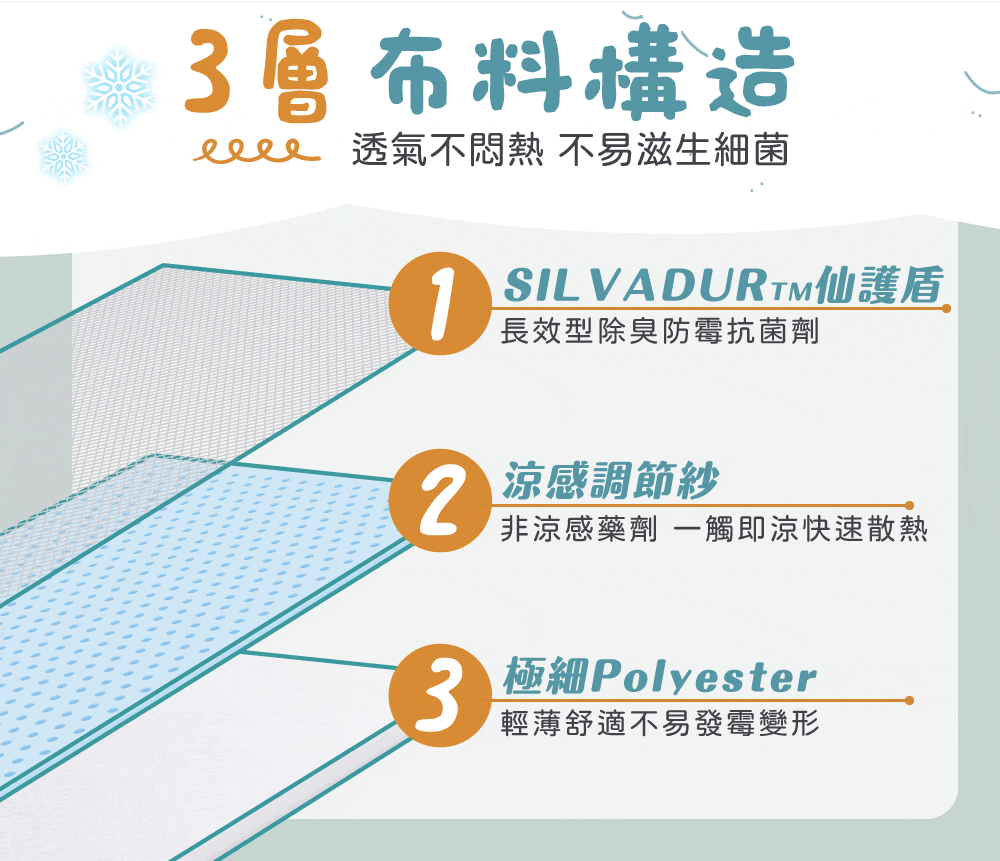 ✅雙面涼感紗設計,選用最新科技布料-涼感調節紗