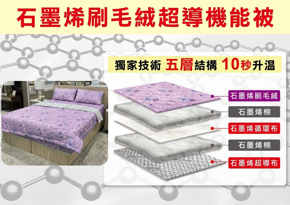 成分/表布:100%聚酯纖維(內含石墨烯纖維)