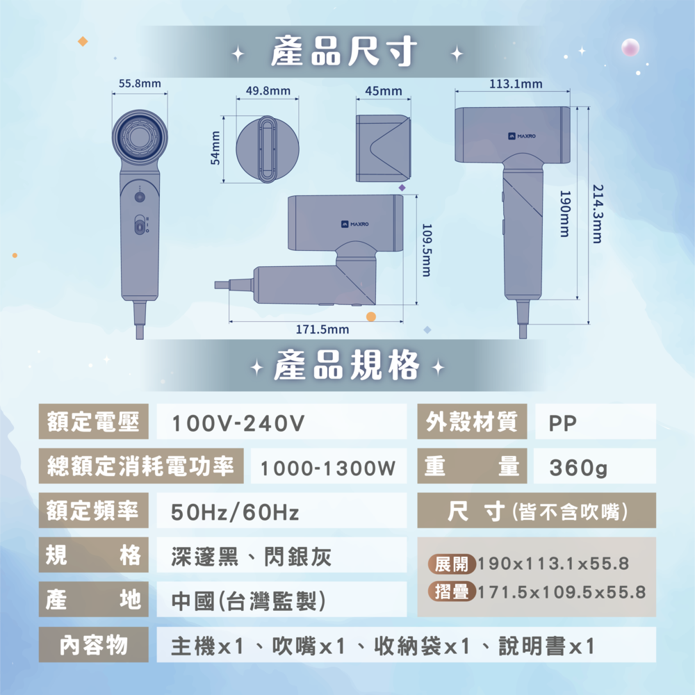 ✅風量集中超速乾,長髮吹乾4-5分鐘更快速